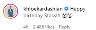 Khloé Kardashian also commented to wish Stassie. She wrote, “Happy birthday Stass!!!”.